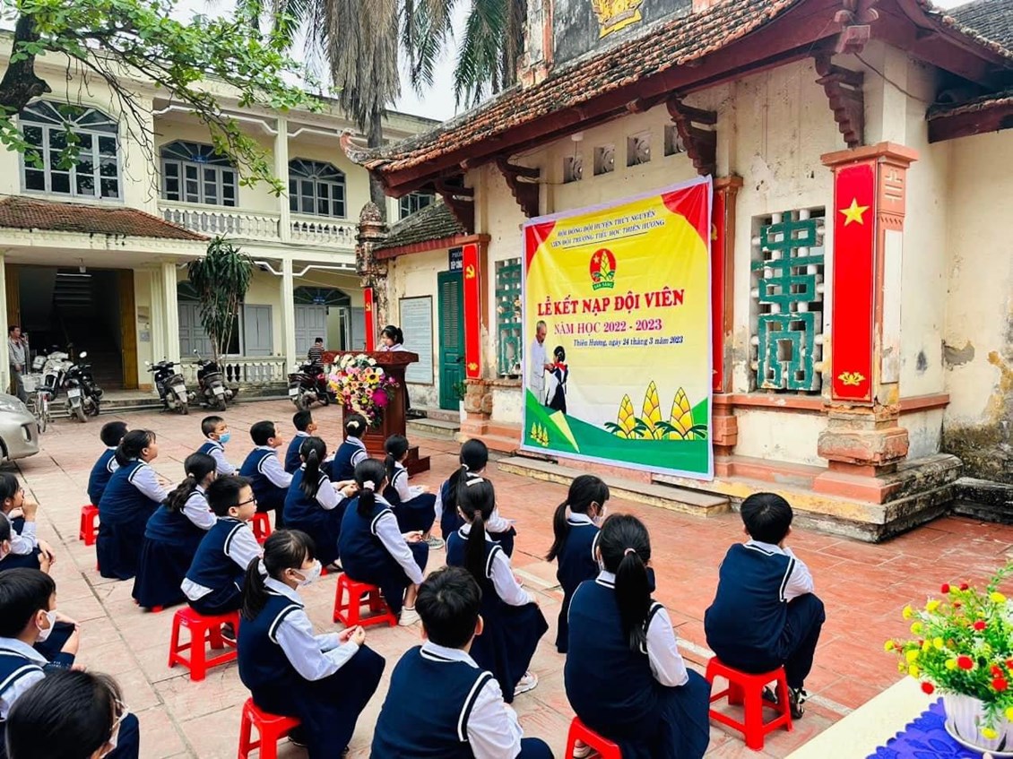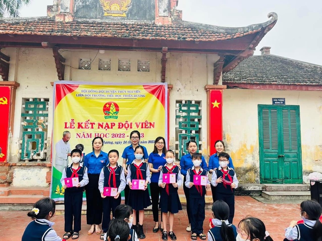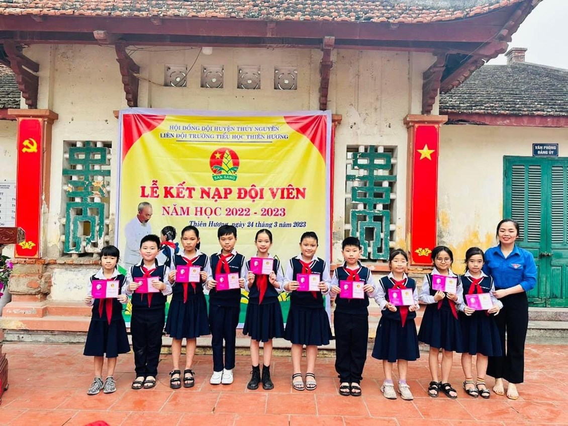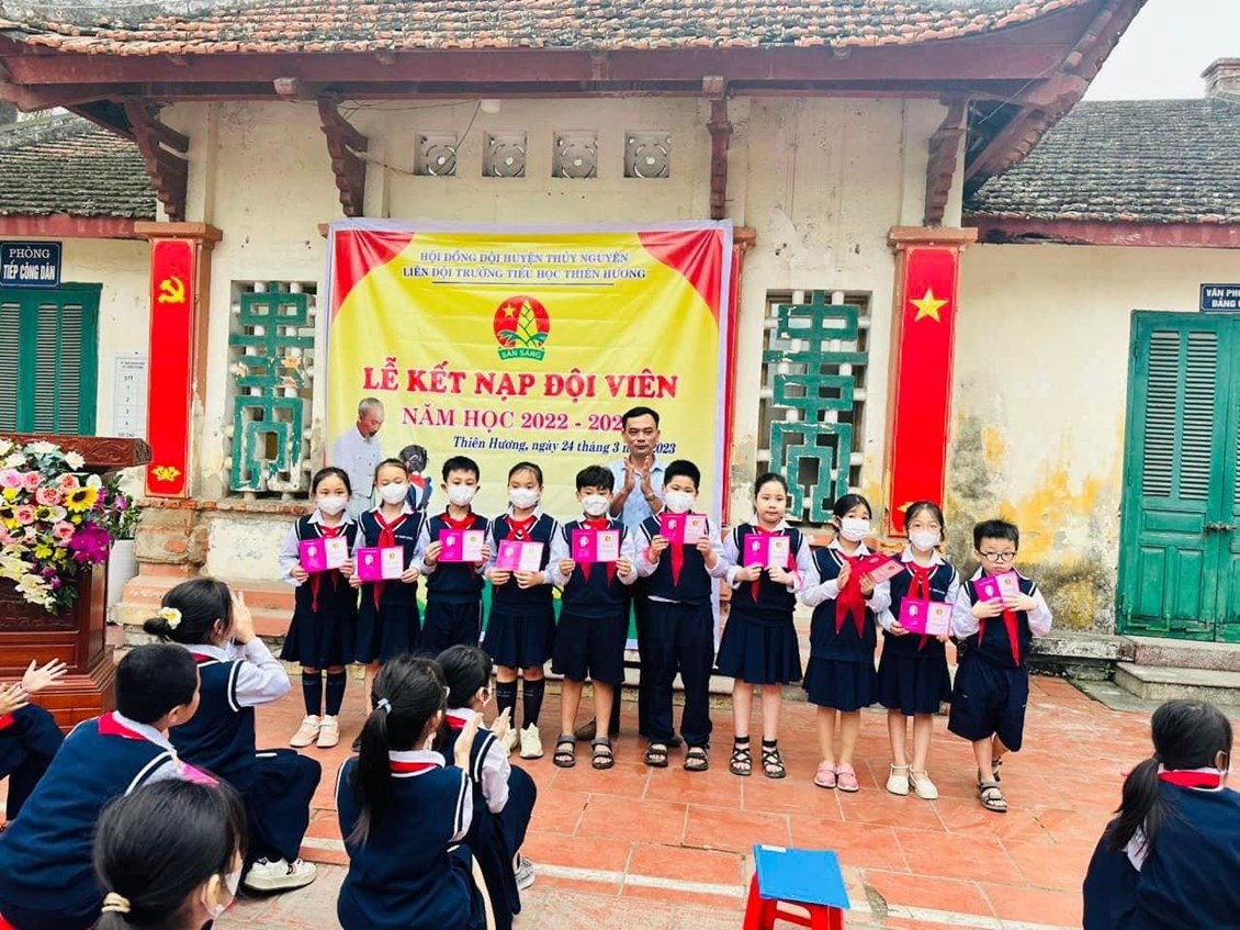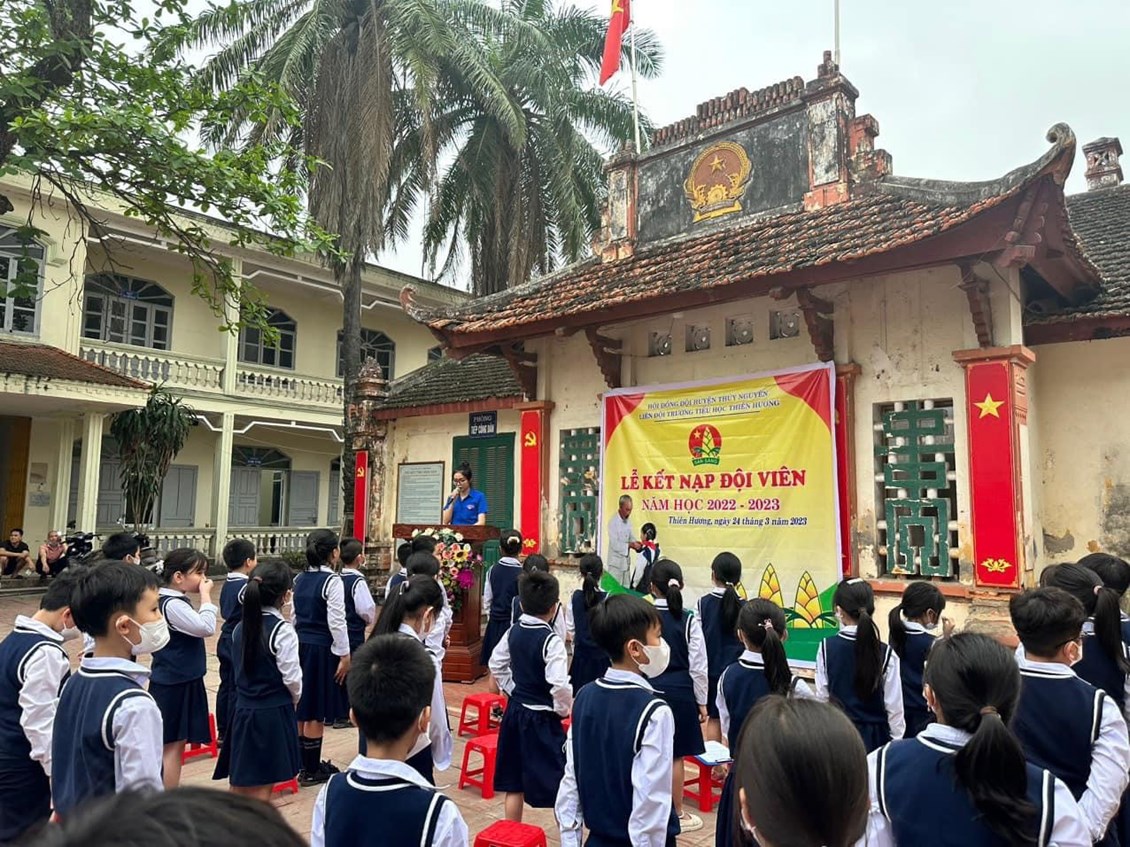 🌈🔥 Thi đua chào mừng kỉ niệm 60 năm phong trào "Nghìn việc tốt", hướng tới kỉ niệm 92 năm ngày thành lập Đoàn thanh niên Cộng sản Hồ Chí Minh. Sáng ngày 24/3/2023, trong tiết trời ấm áp của mùa xuân, trường Tiểu học Thiên Hương long trọng tổ chức LỄ KẾT NẠP ĐỘI đợt 1 cho 60 em học sinh ưu tú khối 3 tại Địa chỉ đỏ - Huyện đường cũ xã Thiên Hương, Thuỷ Nguyên, Hải Phòng, di tích lịch sử cấp quốc gia.