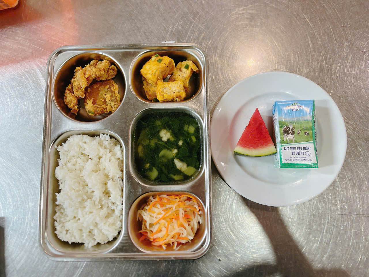 Bên cạnh đó, quy trình chế biến – chia suất ăn được thực hiện đúng quy định vệ sinh an toàn thực phẩm, giúp học sinh có những bữa ăn ngon miệng, chất lượng và an toàn. Điều này góp phần quan trọng vào việc nâng cao thể chất và sức khỏe của các em.