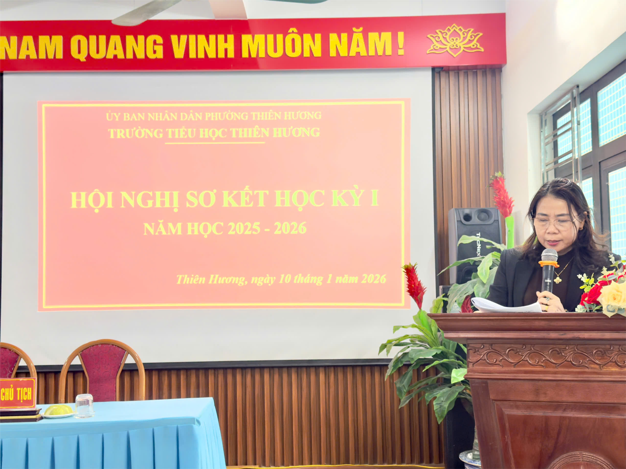 Hội nghị sơ kết khép lại trong không khí nghiêm túc, phấn khởi và quyết tâm cao. Tin tưởng rằng, phát huy những kết quả đã đạt được, tập thể cán bộ, giáo viên, nhân viên trường Tiểu học Thiên Hương sẽ tiếp tục nỗ lực, sáng tạo, hoàn thành xuất sắc nhiệm vụ học kì II năm học 2025 - 2026, góp phần xây dựng nhà trường ngày càng phát triển vững mạnh.
