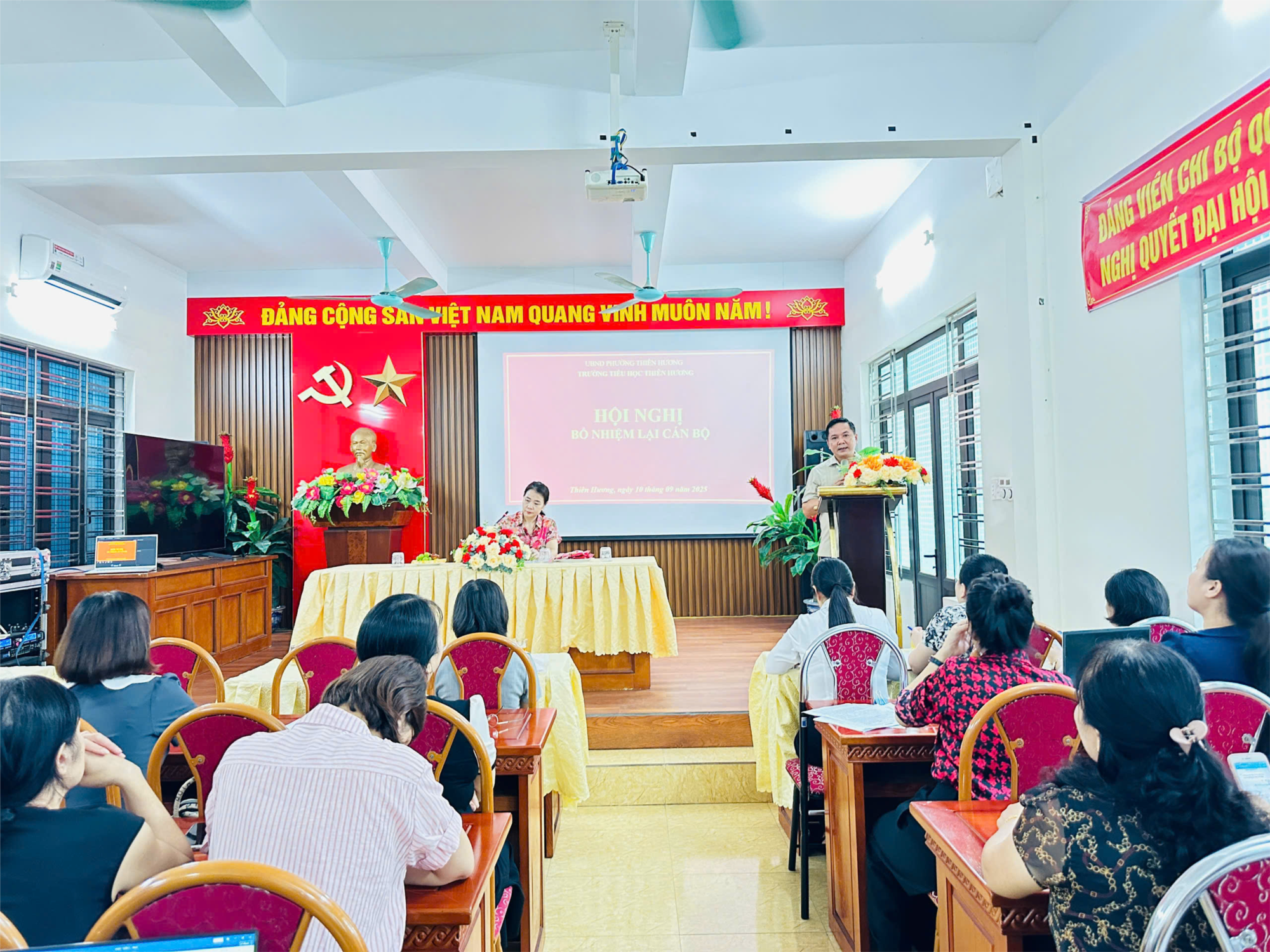 Sáng ngày 10/9/2025, trường Tiểu học Thiên Hương tổ chức Hội nghị lấy phiếu tín nhiệm, đề nghị bổ nhiệm lại chức danh Hiệu trưởng đối với đ/c Đặng Thị Tuyết - Bí thư Chi bộ - Hiệu trưởng trường Tiểu học Thiên Hương nhiệm kỳ 2020 - 2025.
