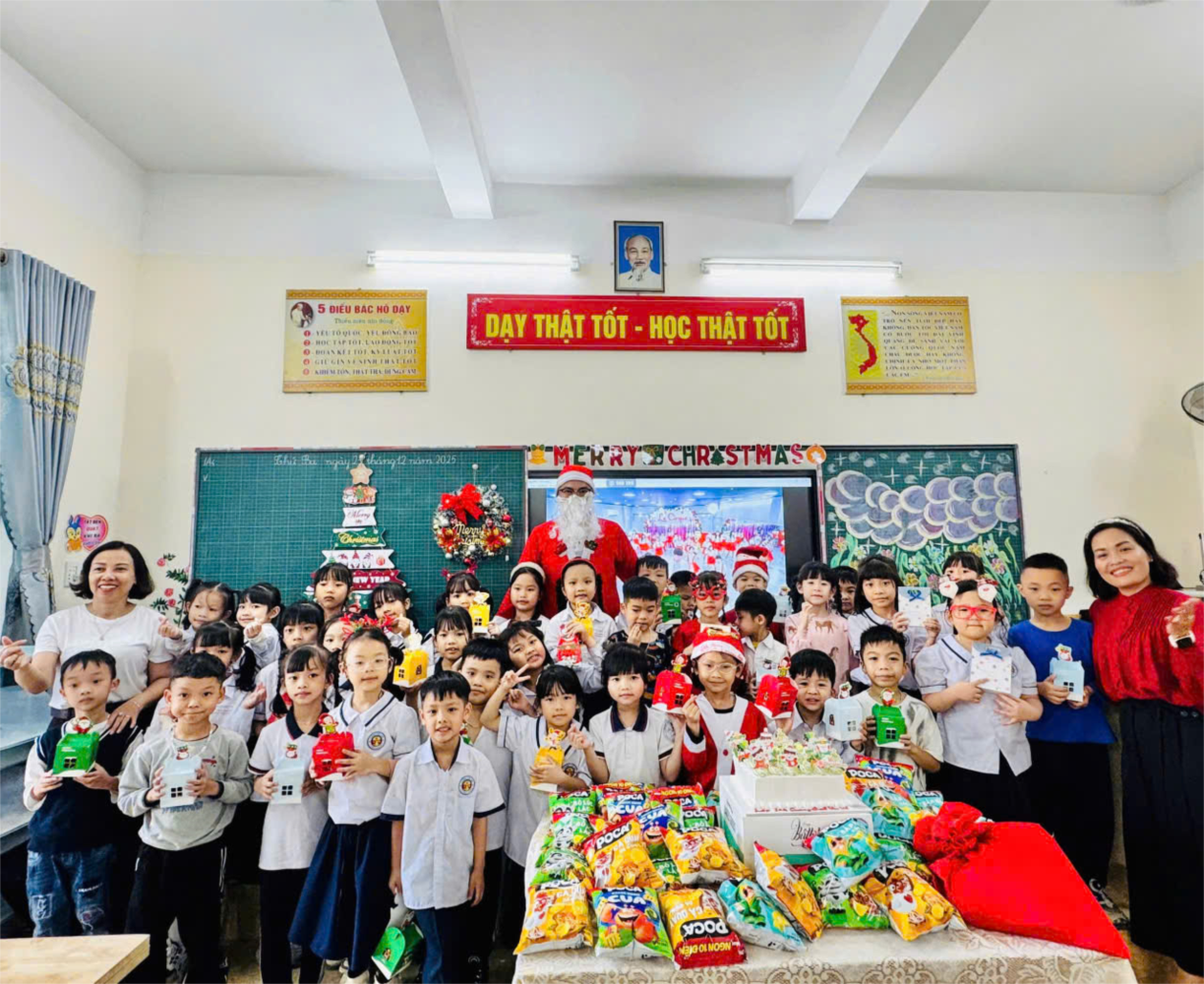 Niềm vui còn được nhân lên khi Ông già Noel ghé thăm và gửi tặng các em những món quà nhỏ xinh. Dù giản dị, nhưng những phần quà ấy mang theo lời chúc tốt lành, là phần thưởng cho sự chăm ngoan, cố gắng và là động lực để các em tiếp tục học tập, rèn luyện. Ánh mắt trong trẻo, nụ cười hạnh phúc của các em khiến không khí Giáng sinh thêm ấm áp và rực rỡ hơn bao giờ hết.